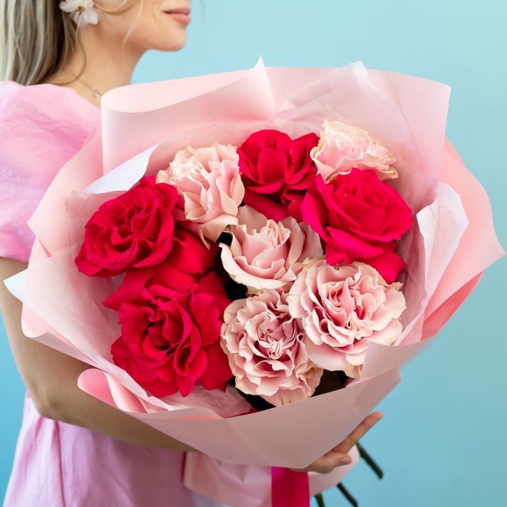 Описание товара "9 вывернутых роз сорт пинк мондиаль"
