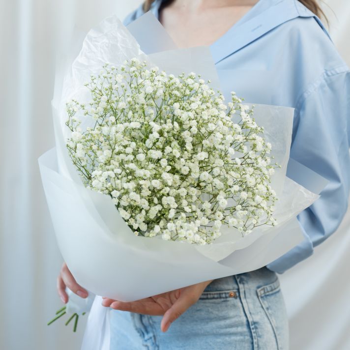 В составе 5 белых гипсофил в дизайнерской упаковке.