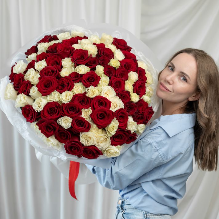 В составе 25 белых хризантем (сорт Бакарди) в дизайнерской упаковке.