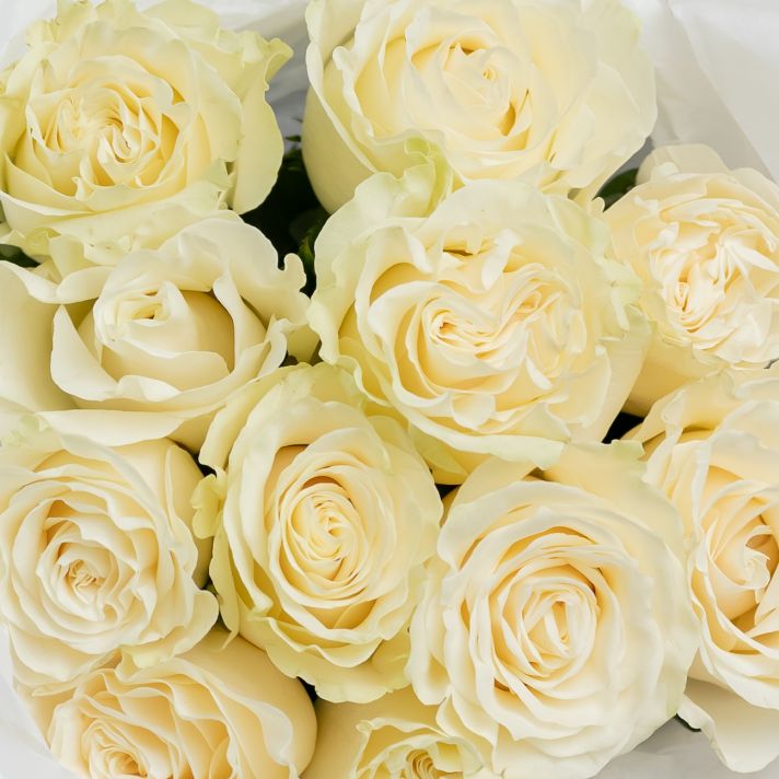 11 белых роз Эквадор (сорт Мондиаль) в объемной стильной упаковке.