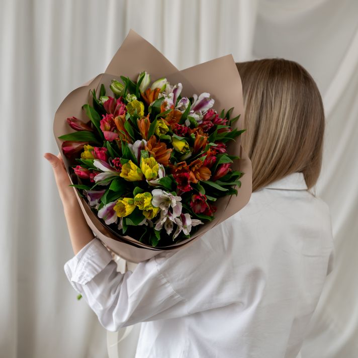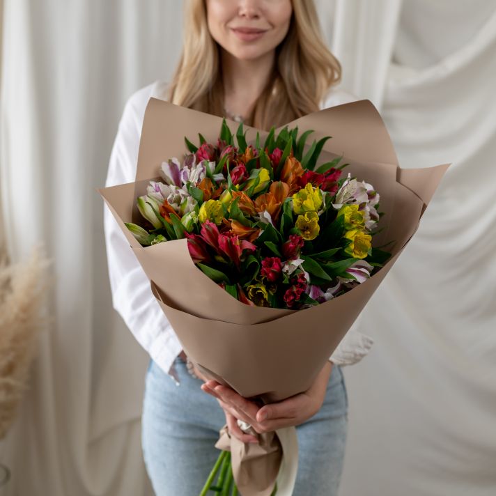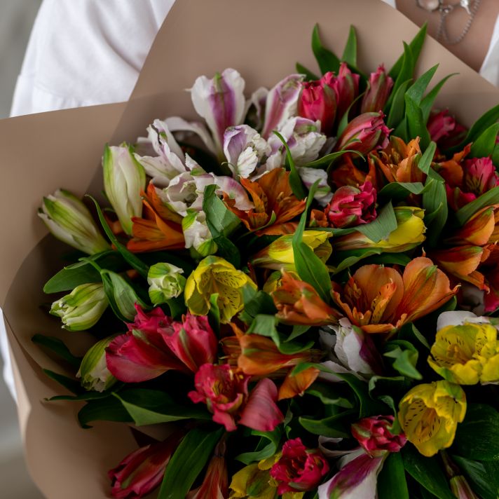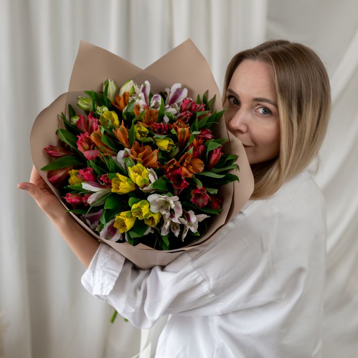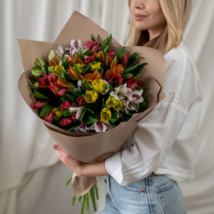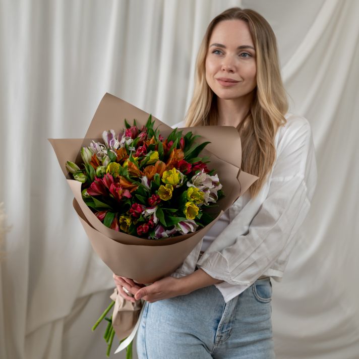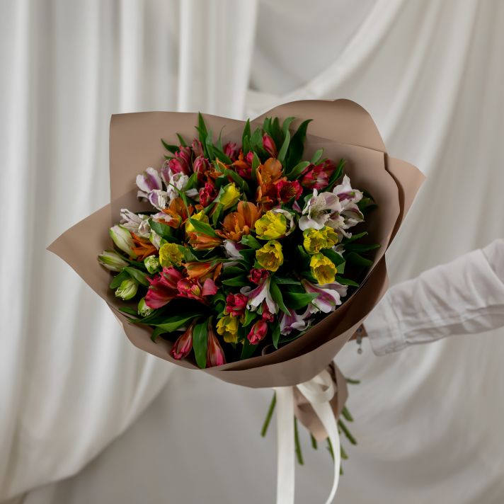 В составе 11 альстромерий микс в дизайнерской упаковке.