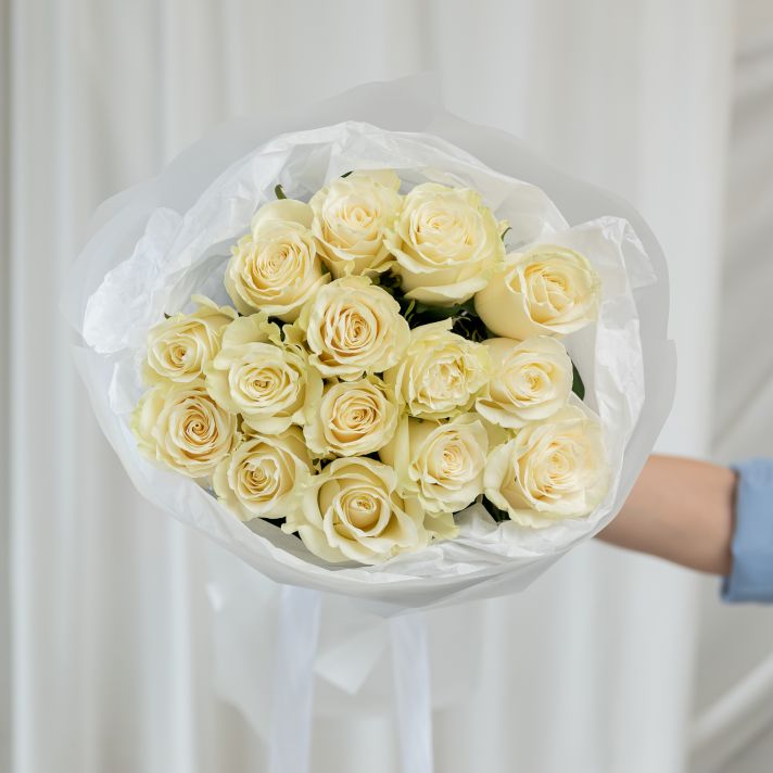 В составе 15 розовых диантусов в дизайнерской упаковке.