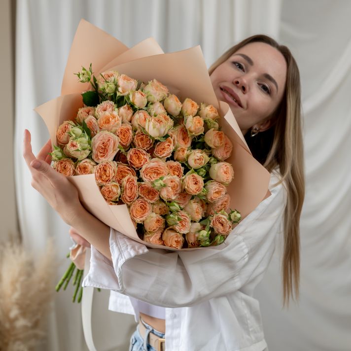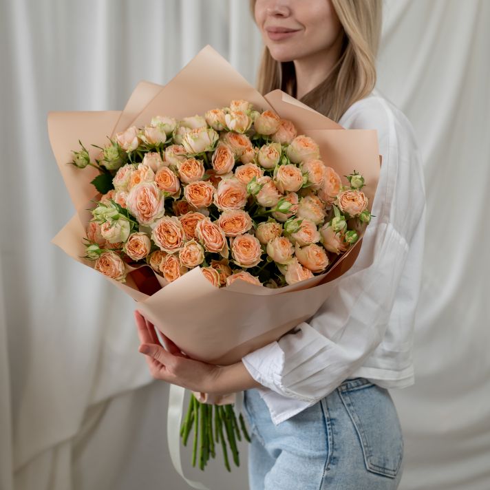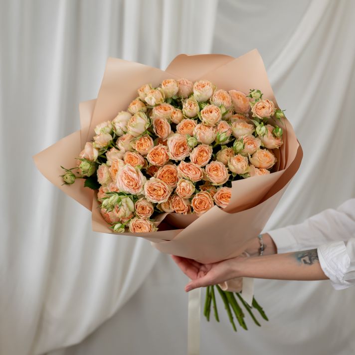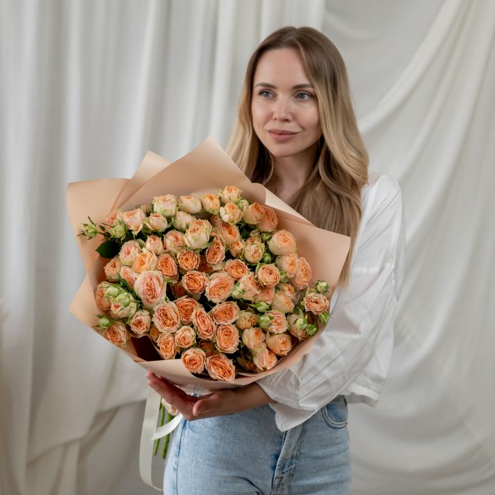 15 кустовых бежевых роз (сорт Кения)