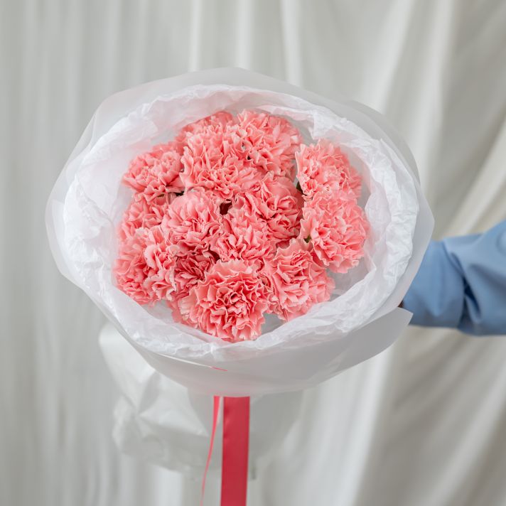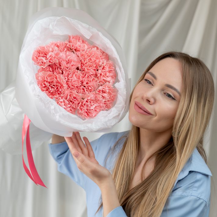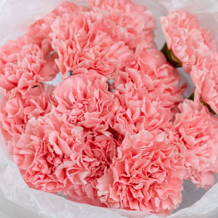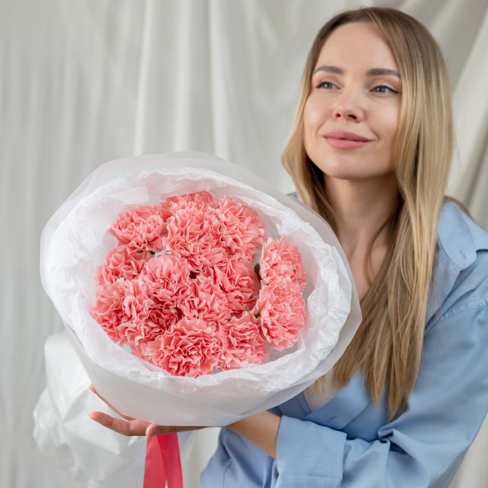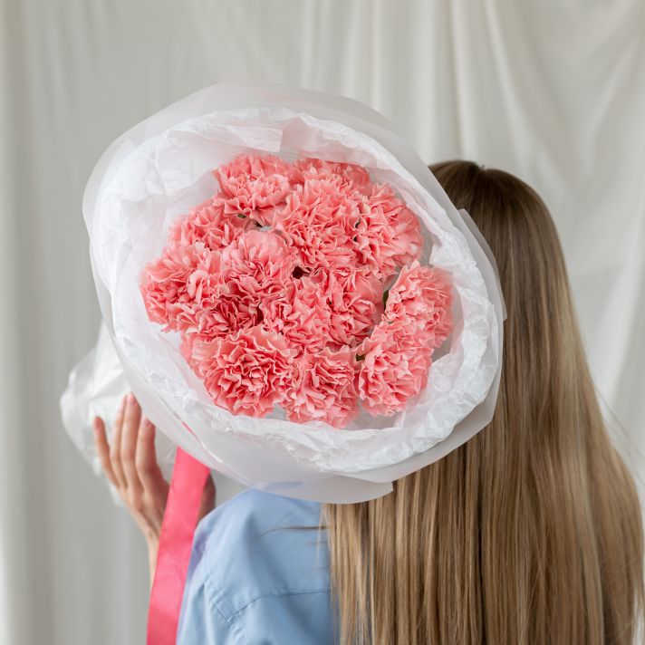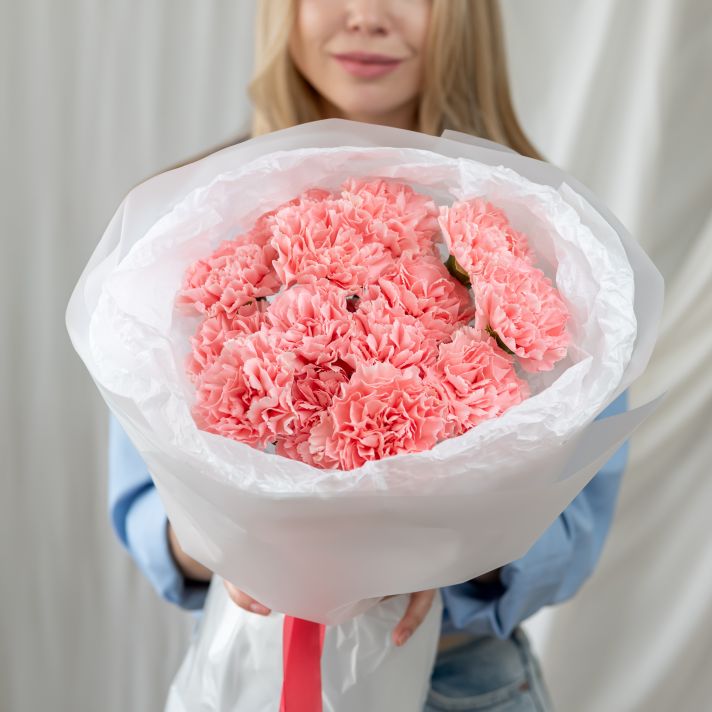 В составе 15 розовых диантусов в дизайнерской упаковке.