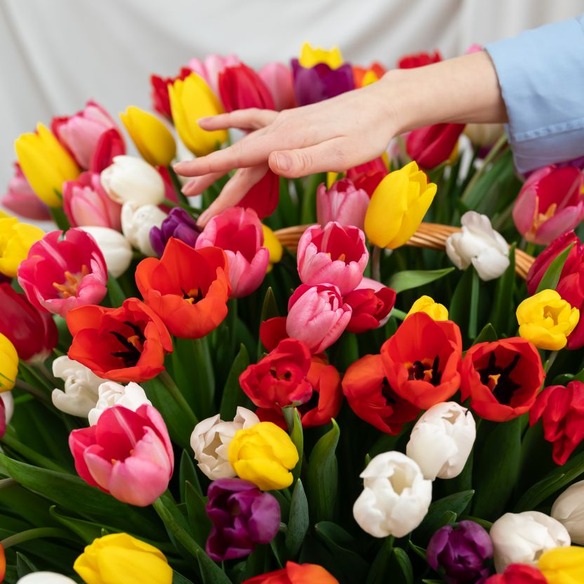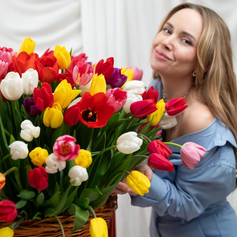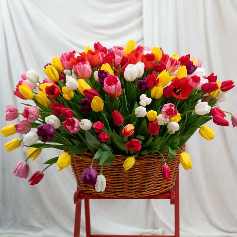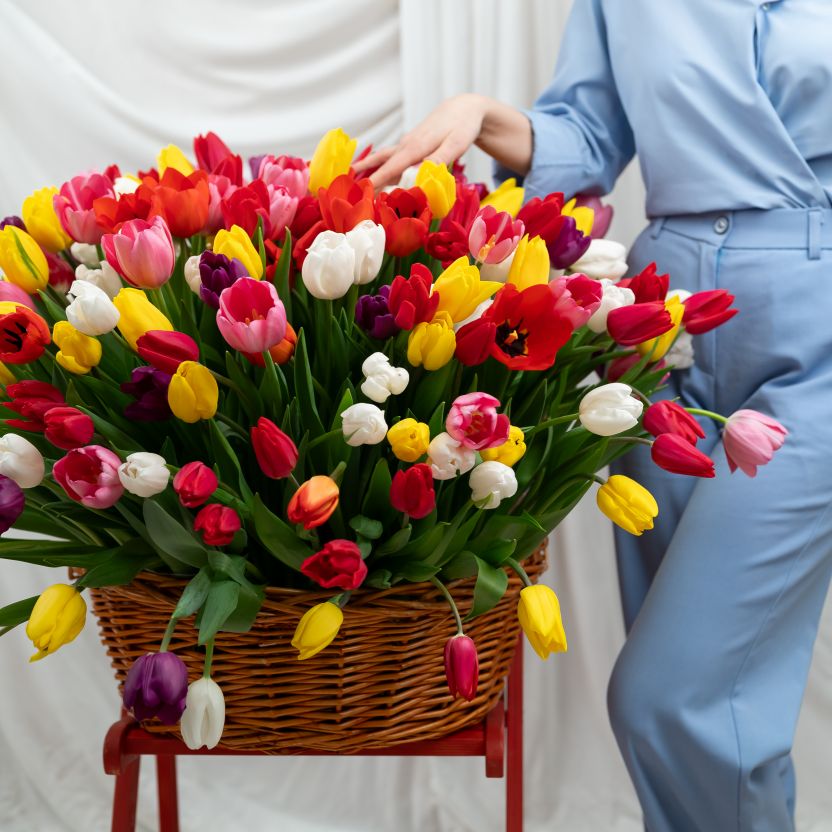 201 тюльпан в корзине