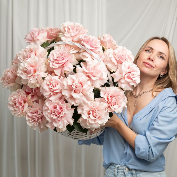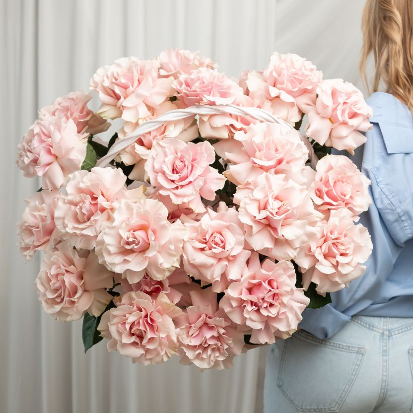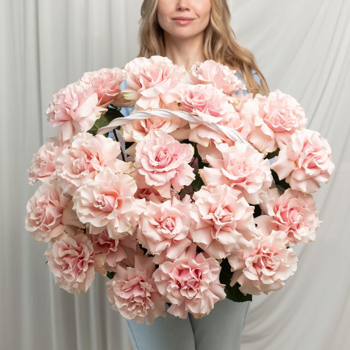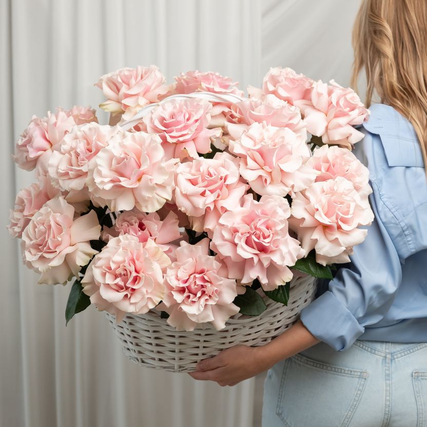 25 Французская роза (Пинк Мондиаль) в корзине размер L (40/37)