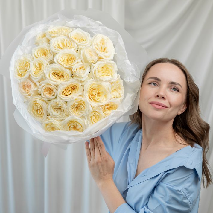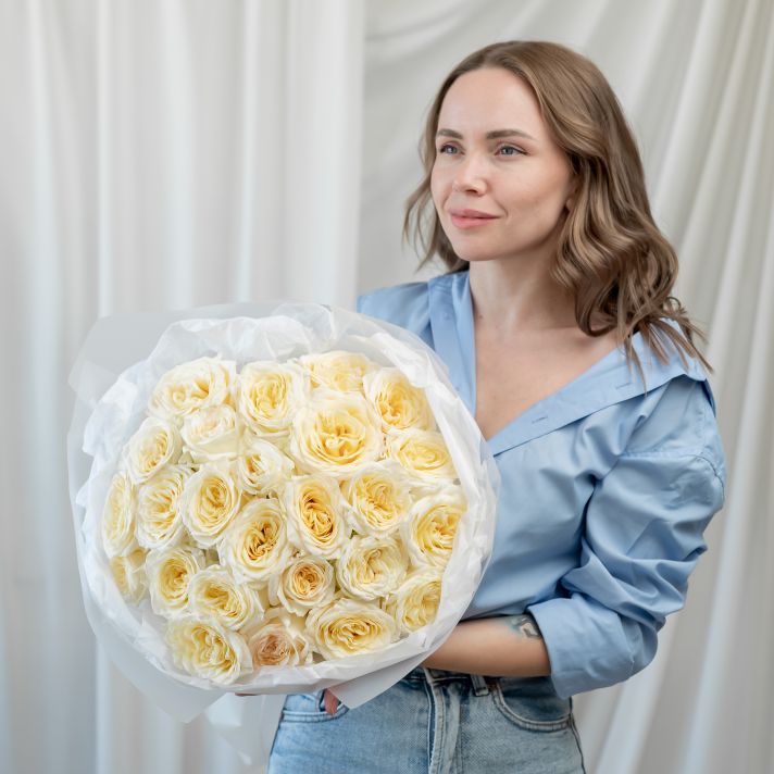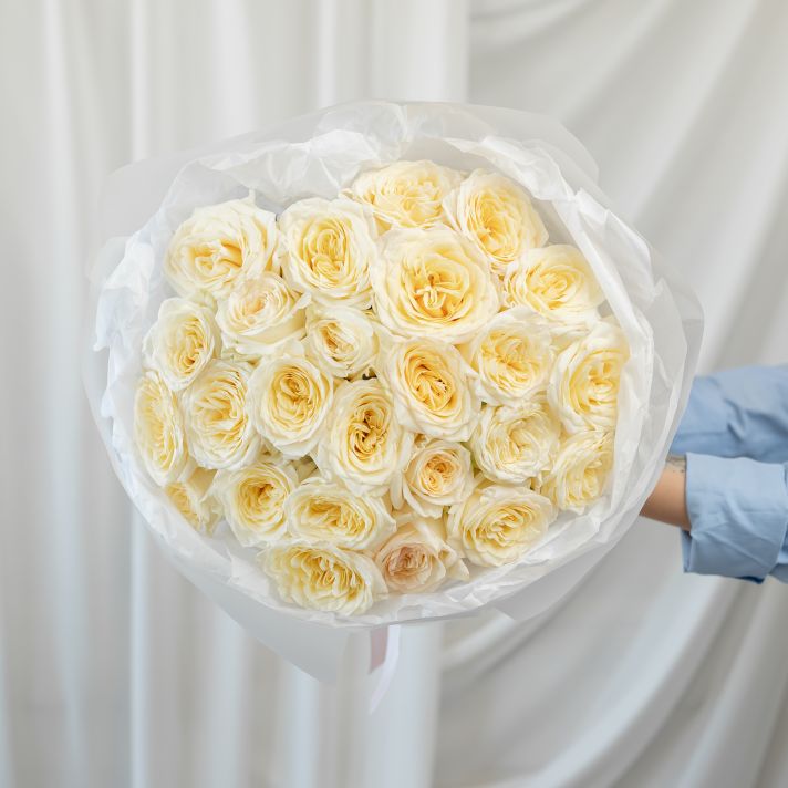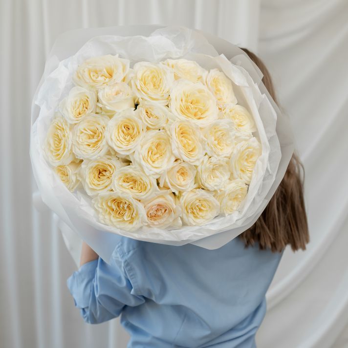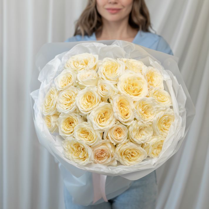 25 пионовидных роз (сорт Кендл Лайт)