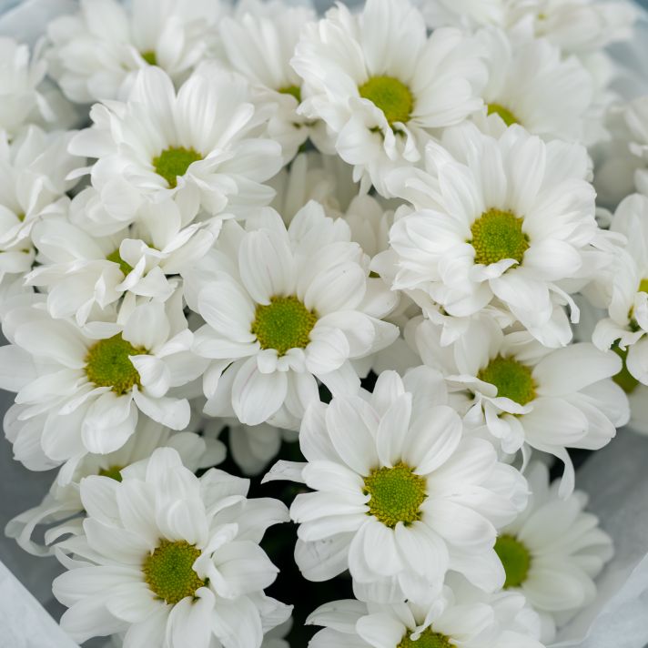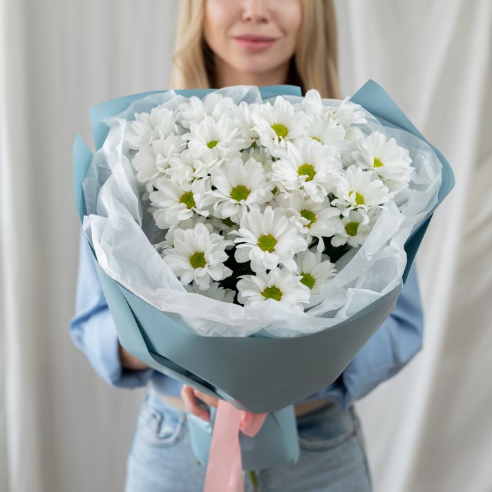 В составе 3 белых хризантем (сорт Бакарди) в дизайнерской упаковке.