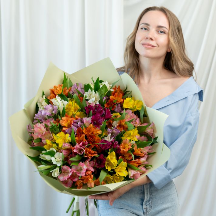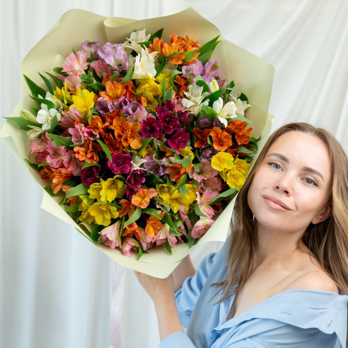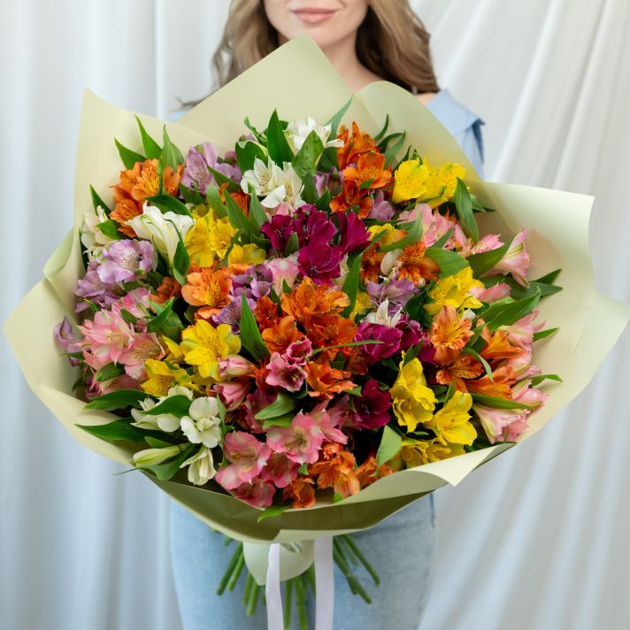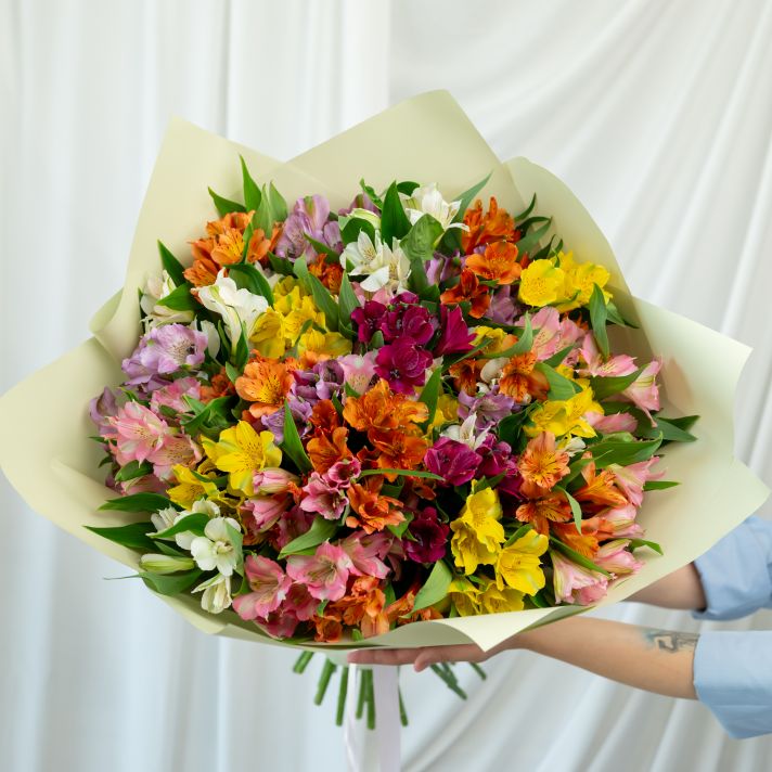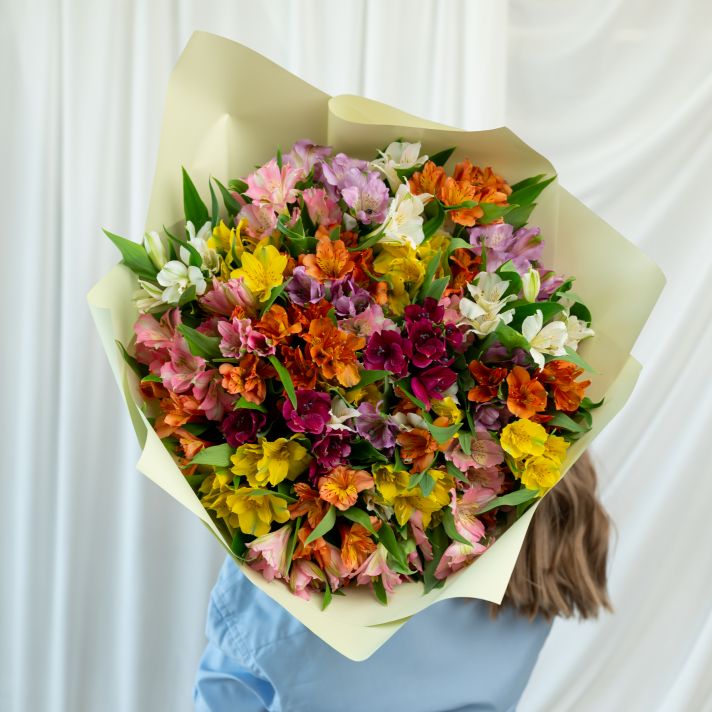 В составе 35 альстромерий микс в дизайнерской упаковке.