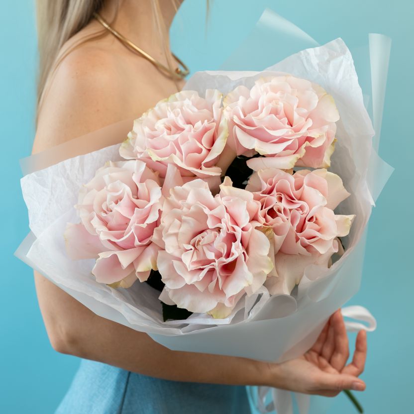 Описание товара "9 вывернутых роз сорт пинк мондиаль"