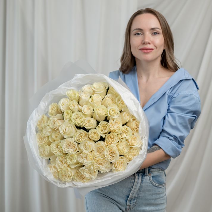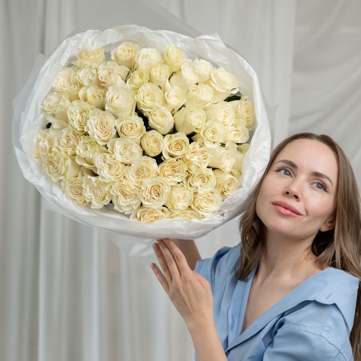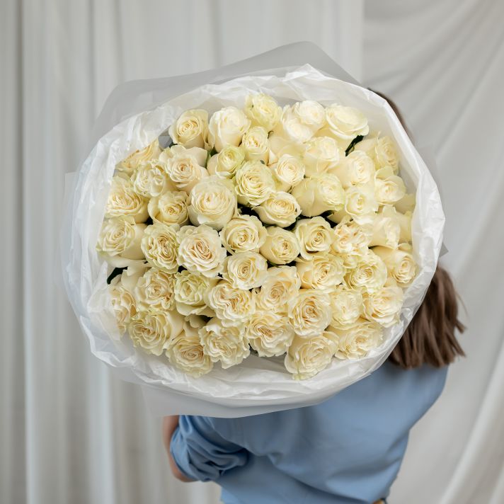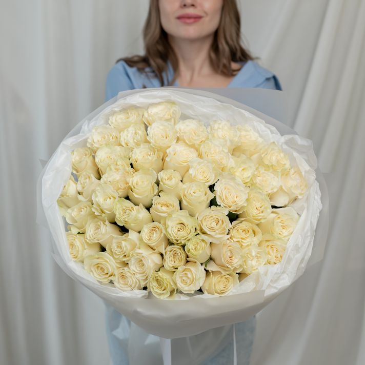51 белая роза Эквадор  в объемной стильной упаковке.