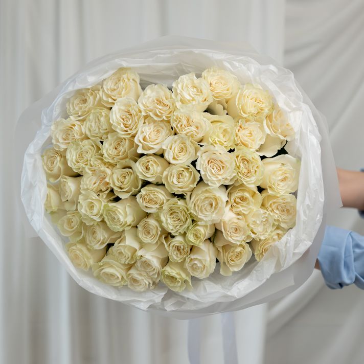 35 кремовых роз (60 см) в дизайнерской упаковке.