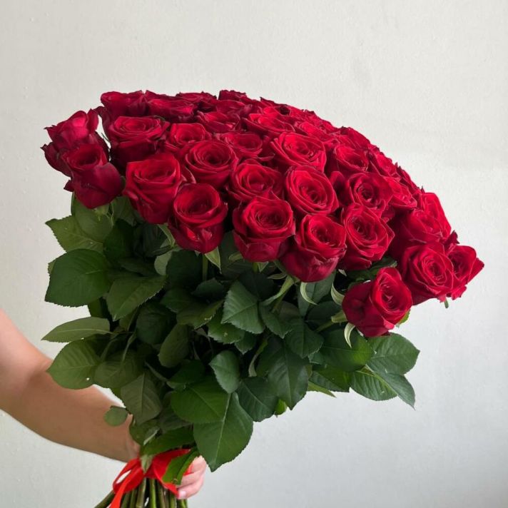 51 красная роза под ленту