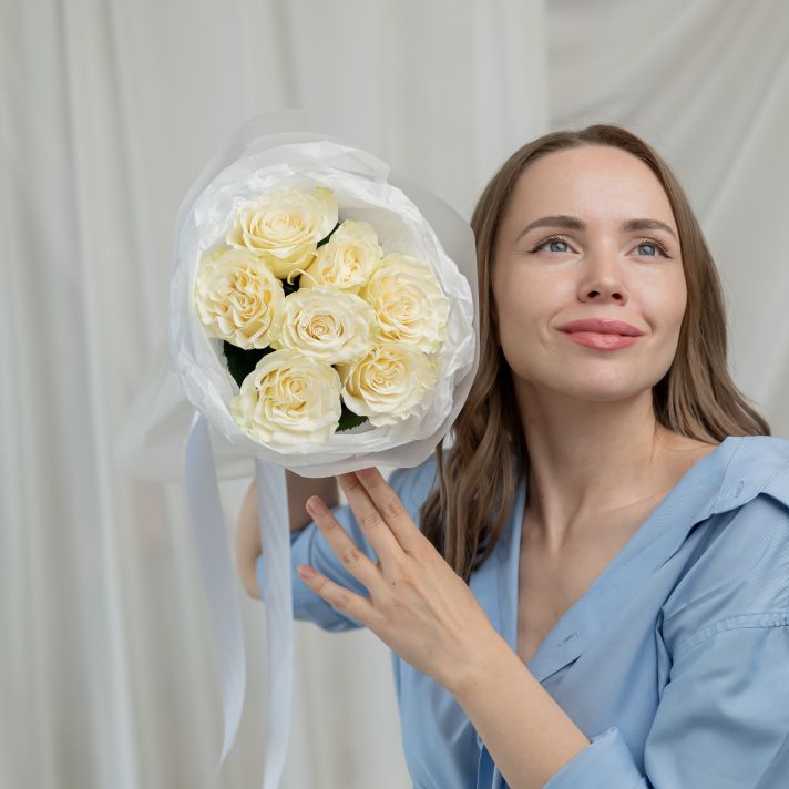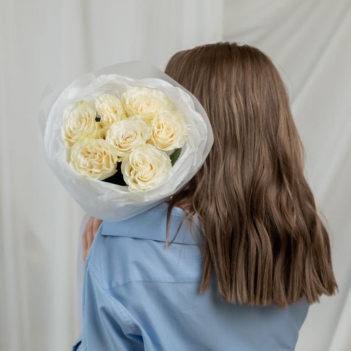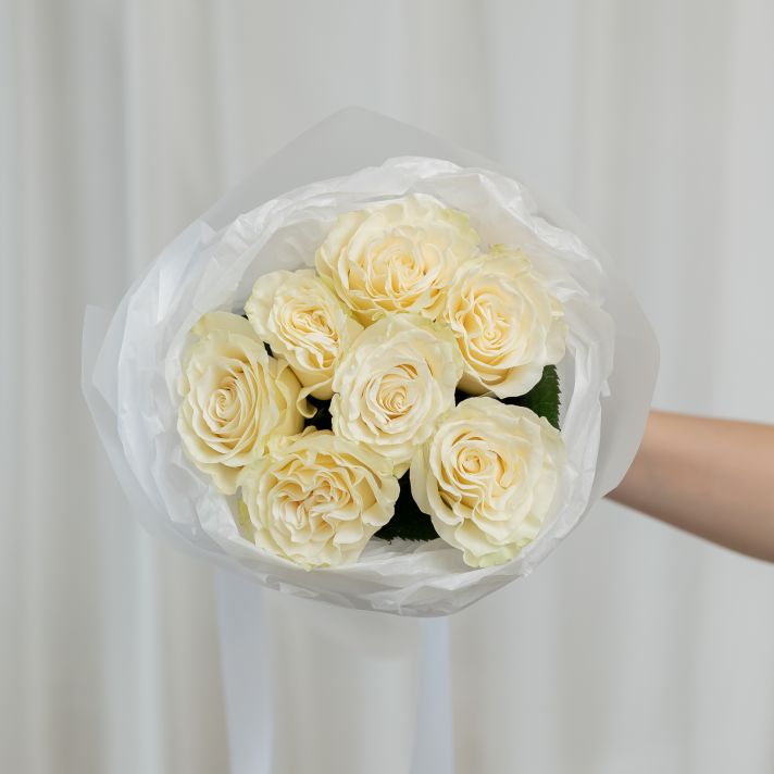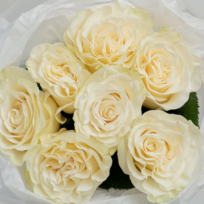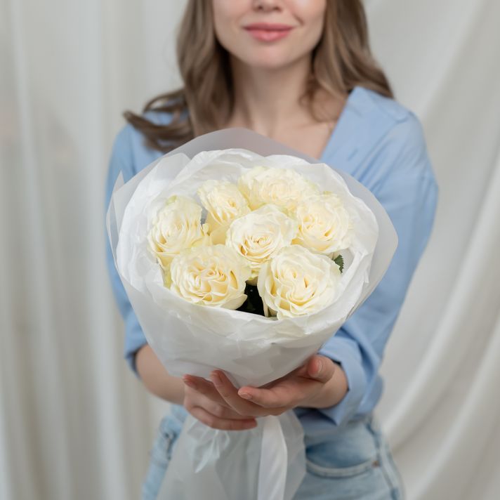 7 белых роз Эквадор  в объемной стильной упаковке.