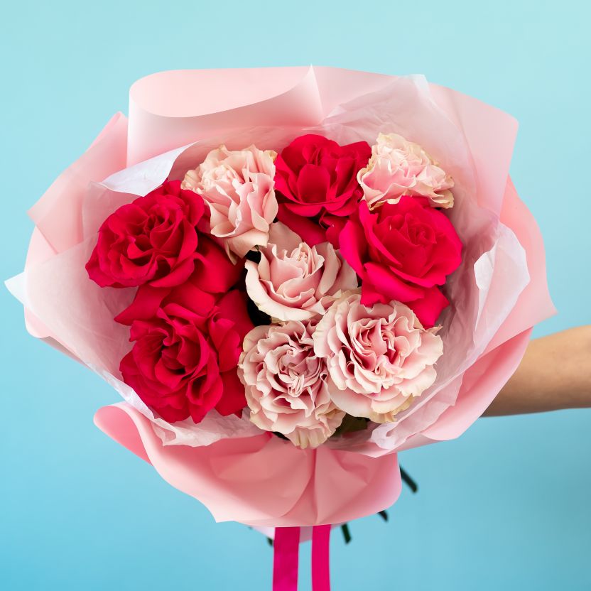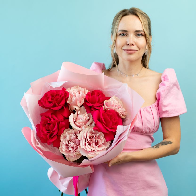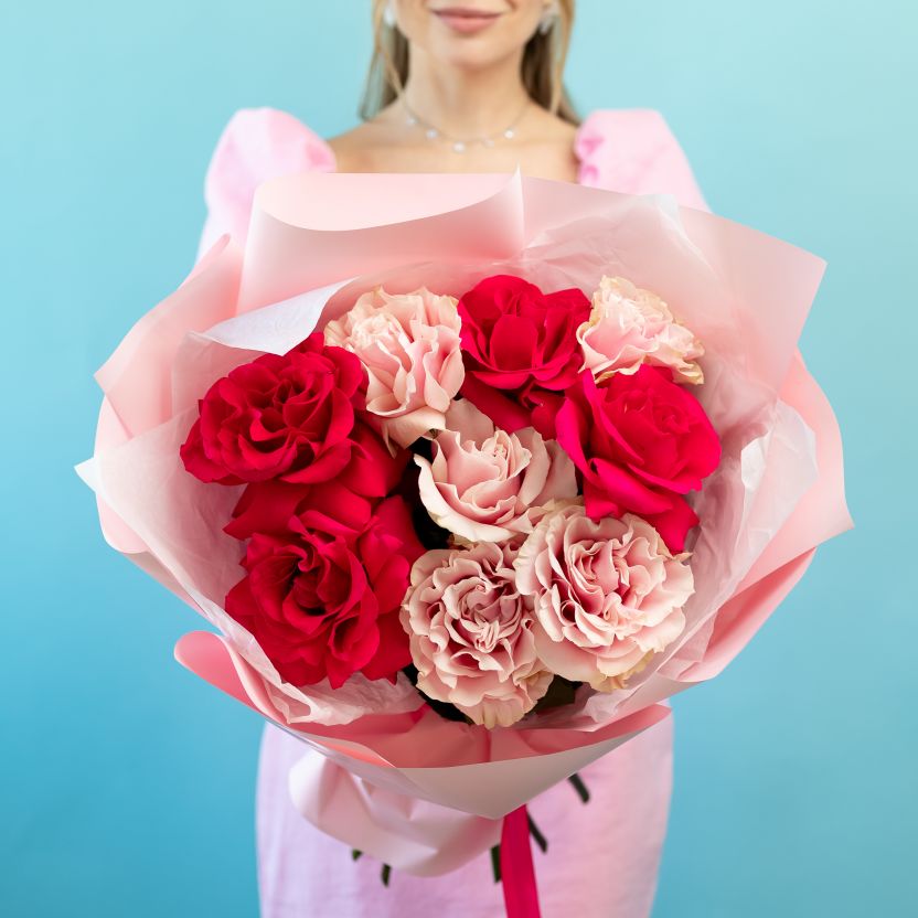 Описание товара "Сборный букет из кустовых роз, хризантем и ромашек"