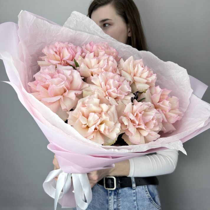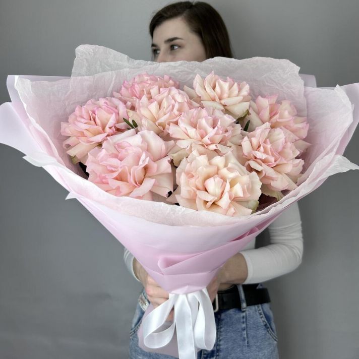7 кремовых роз (60 см) в дизайнерской упаковке.