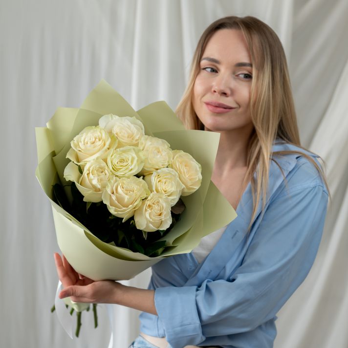 9 белых роз Эквадор