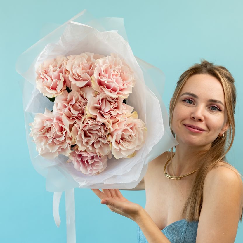 Описание товара "Сборный букет с кустовыми розами и диантусами"
