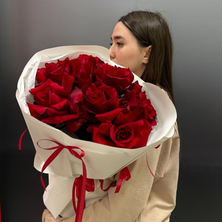 Букет ХИТ из красных французских рос с бантиками