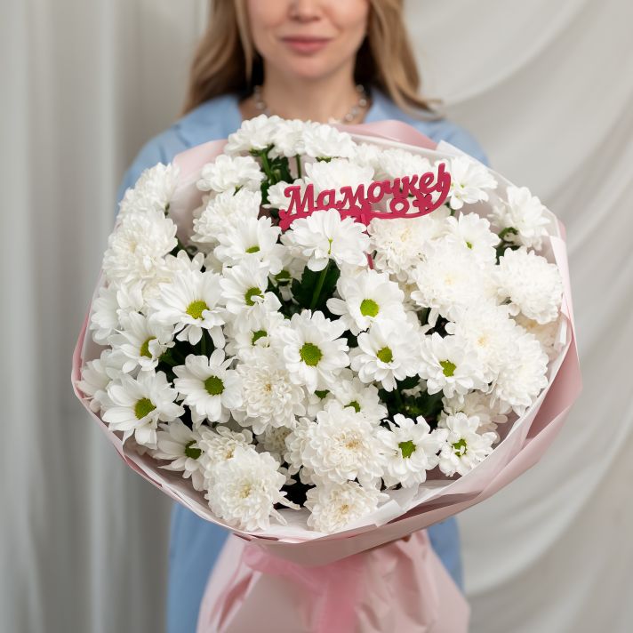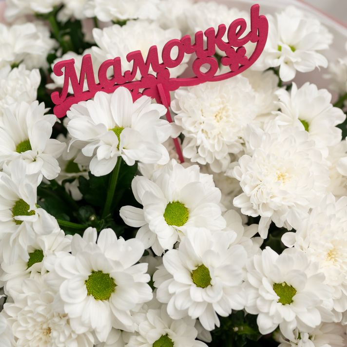 Хризантема микс 9 шт + топпер "Маме"