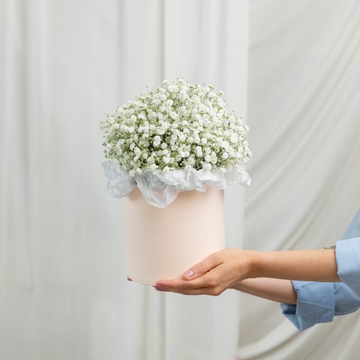 Шляпная коробка S гипсофила белая
