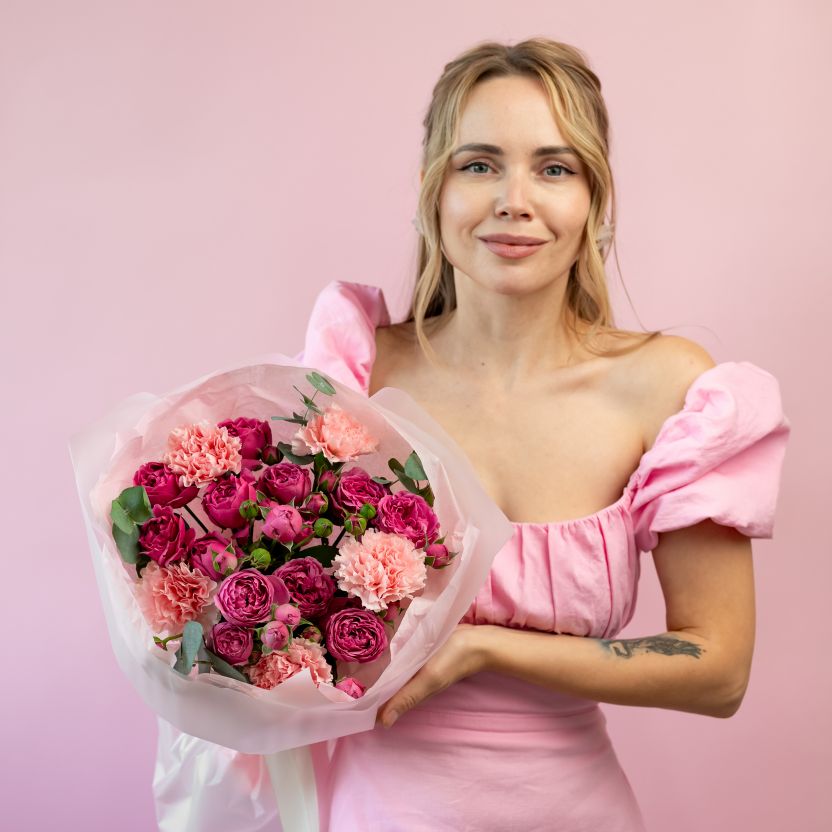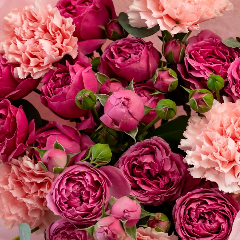 Сборный букет с кустовыми розами и диантусами