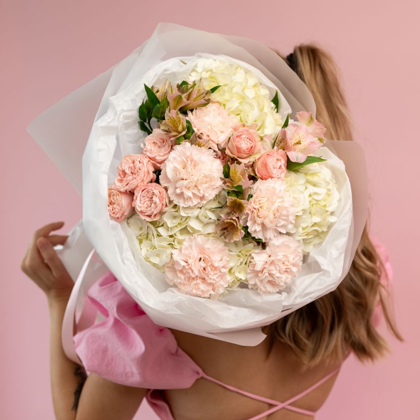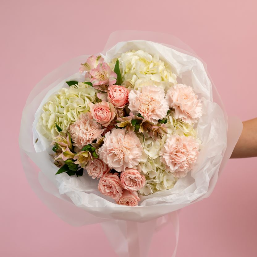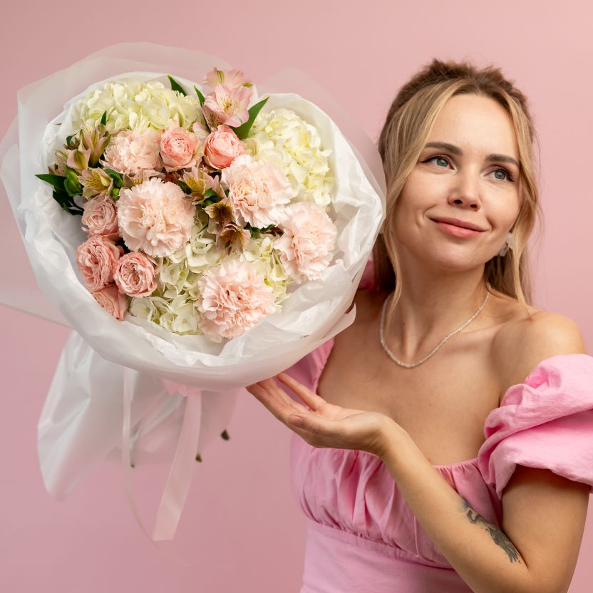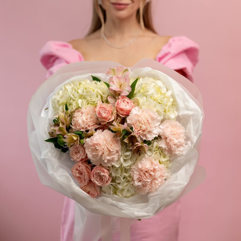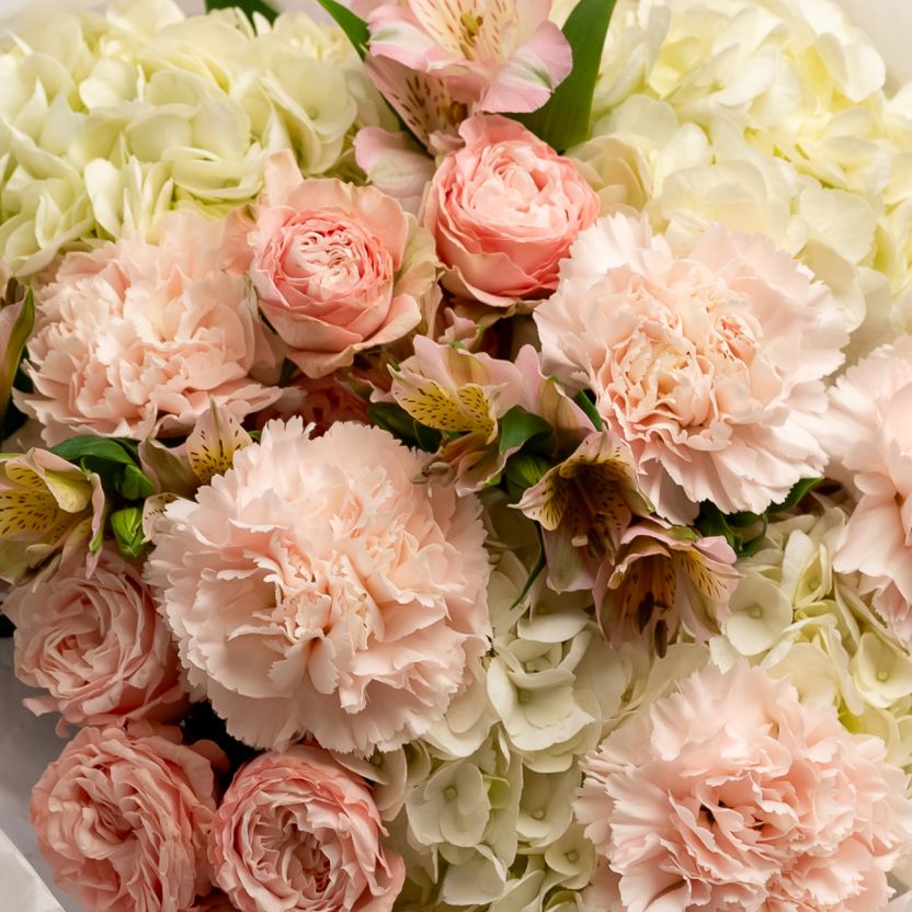 Описание товара "Сборный букет из кустовых роз, хризантем и ромашек"